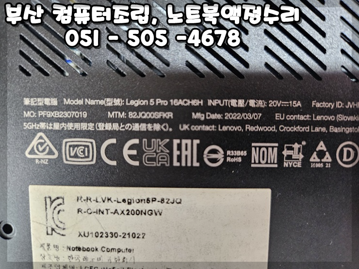 부산노트북액정교체, 부산노트북액정수리, 부산노트북수리, 동래노트북수리, 명륜동컴퓨터수리, 명륜동노트북수리, 레노버노트북수리, 레노버액정교체, 레노버리전5프로, Legion5Pro, 16ACH6H, 노트북액정당일교체, 게이밍노트북수리, 165Hz, 2560x1600, WQXGA, 16인치노트북, 쿨러청소, 노트북청소, 써멀점검, 조은컴퓨터, 온천동컴퓨터수리